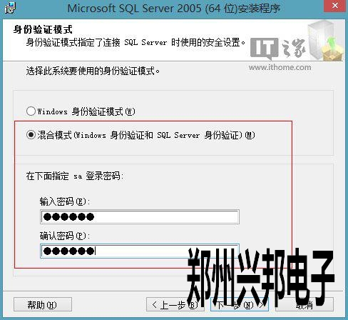5、選擇混合模式登陸,并輸入登陸數據庫的密碼