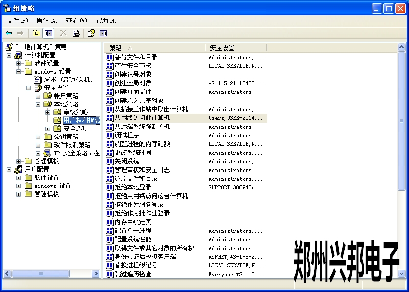 選擇“計算機配置” →“windows設置” →安全設置→“本地策略” →“用戶權利指派”打開