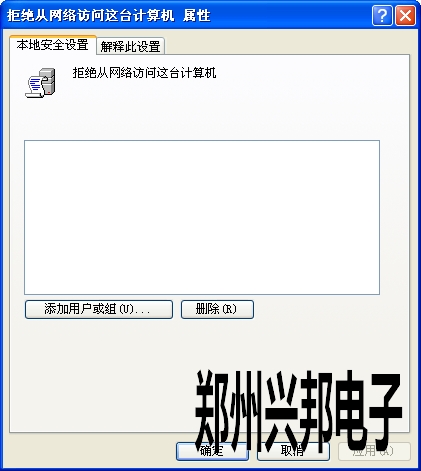 在“拒絕從網絡訪問”右擊“屬性”把里面的所有賬戶刪除