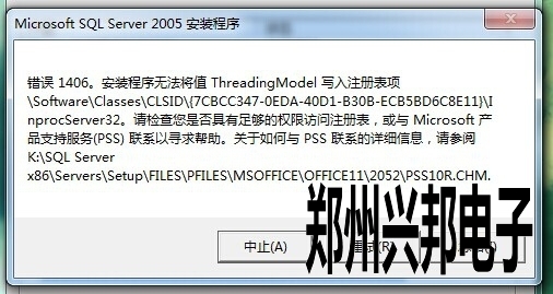 客戶使用的我們的互聯(lián)網(wǎng)一卡通食堂售飯機,在安裝數(shù)據(jù)庫SQL2005時出現(xiàn)SQL server 2005 錯誤 1406. 未能將值 CLSID或ThreadingModel寫入注冊表項\Software\Classes\PROTOCOLS\Handler\ms-help. 怎么辦