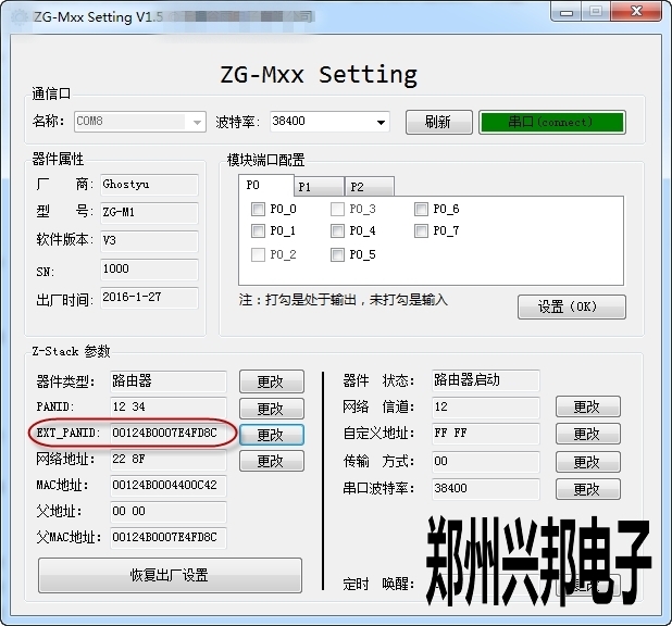 第一步:取之前的網絡中的一個路由器設備,使用Setting軟件讀取其擴展PANID,如下圖: