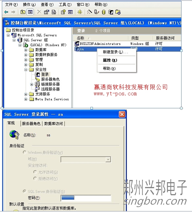 2. sa帳戶,右擊屬性修改。